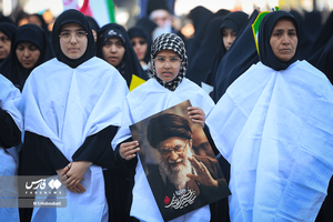امروز مادران و دختران یزدی کفنپوشان و همنوا با حضرت زینب (س) در «سوگ رهبر، داغ میناب» به میدان مبارزه آمدند و سیل جمعیت از حسینیه تاریخی امیرچقماق به سمت امامزاده جعفر (ع) با فریاد انتقام و محکومیت استکبار همراه شد.عکس: محمدصادق حبوباتی