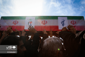 مردم یزد بعدازظهر امروز با ٣ برادر شهید خود؛ شهدای اقتدار ایران «مصطفی عارف»، «محمدرضا آروز» و «مهدی آخوندی» وداع و پیکر پاک مدافعان وطن بر شانه مردم روزهدار یزد تشییع شد. عکس: محمدصادق حبوباتی