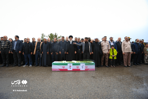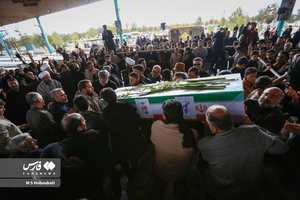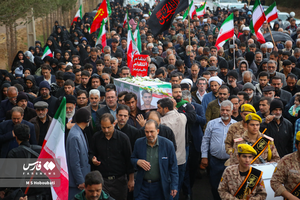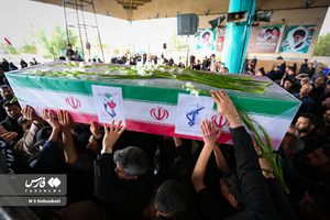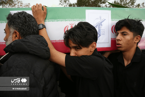 شهید حمله تروریستی صهیونی_آمریکایی، سرباز وطن «امیرمحمد جعفریان» در عصر بارانی کویر بر شانههای روزهداران دارالعباده یزد تشییع و در گلزاری شهدای خلدبرین تدفین شد.