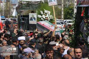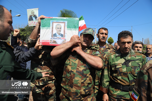 پیکر شهید "علی منتظری" کارمند سازمان منابع طبیعی و آبخیزداری کشور که در حملات ددمنشانه رژیم صهیونیستی به درجه رفیع شهادت نائل آمد، توسط همکاران منابع طبیعی و مردم قدرشناس تنکابن تشییع و در زادگاهش روستای شهیدآباد(کاردگر محله) به خاک سپرده شد. عکاس:غلامرضاشمس ناتری